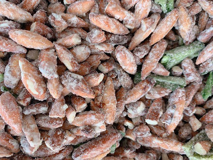 Mứt hạt bàng ngọt: Cho đường cát trắng vào chảo với một chút nước, đun nhỏ lửa cho đến khi đường hơi sền sệt thì cho hạt bàng vào và đảo đều tay cho tới lúc đường khô là tắt bếp.