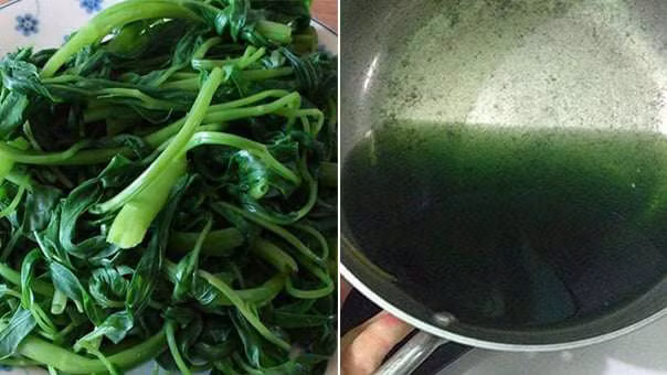 Nhiều người lo sợ không dám ăn khi thấy nước rau muống luộc có màu xanh đậm, hơi ngả màu vì nghi trong rau tồn dư hóa chất.