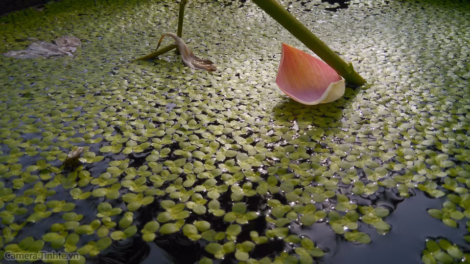 Năm bức ảnh trên cho thấy Bphone có khả năng bao quát không gian ngoài trời rất tốt, từ góc chụp phong cảnh ở xa tới cận cảnh chủ thể. Điều này thể hiện qua chi tiết màu vàng ở tâm của hoa súng không bị cháy/bệt hay những cành hoa súng khô vương vãi trên nền dâu bèo ở góc tối lẫn góc sáng vẫn giữ được độ tương phản và màu sắc rõ ràng.