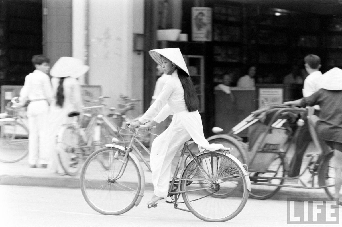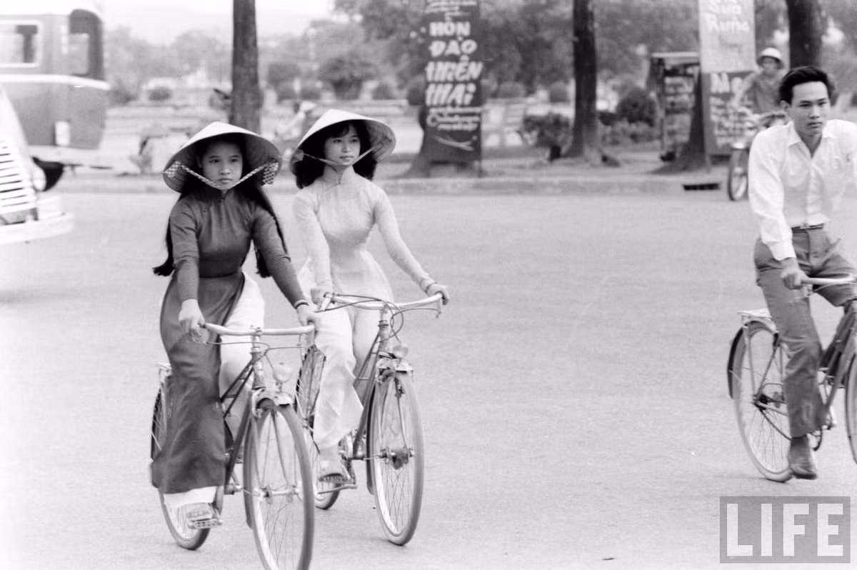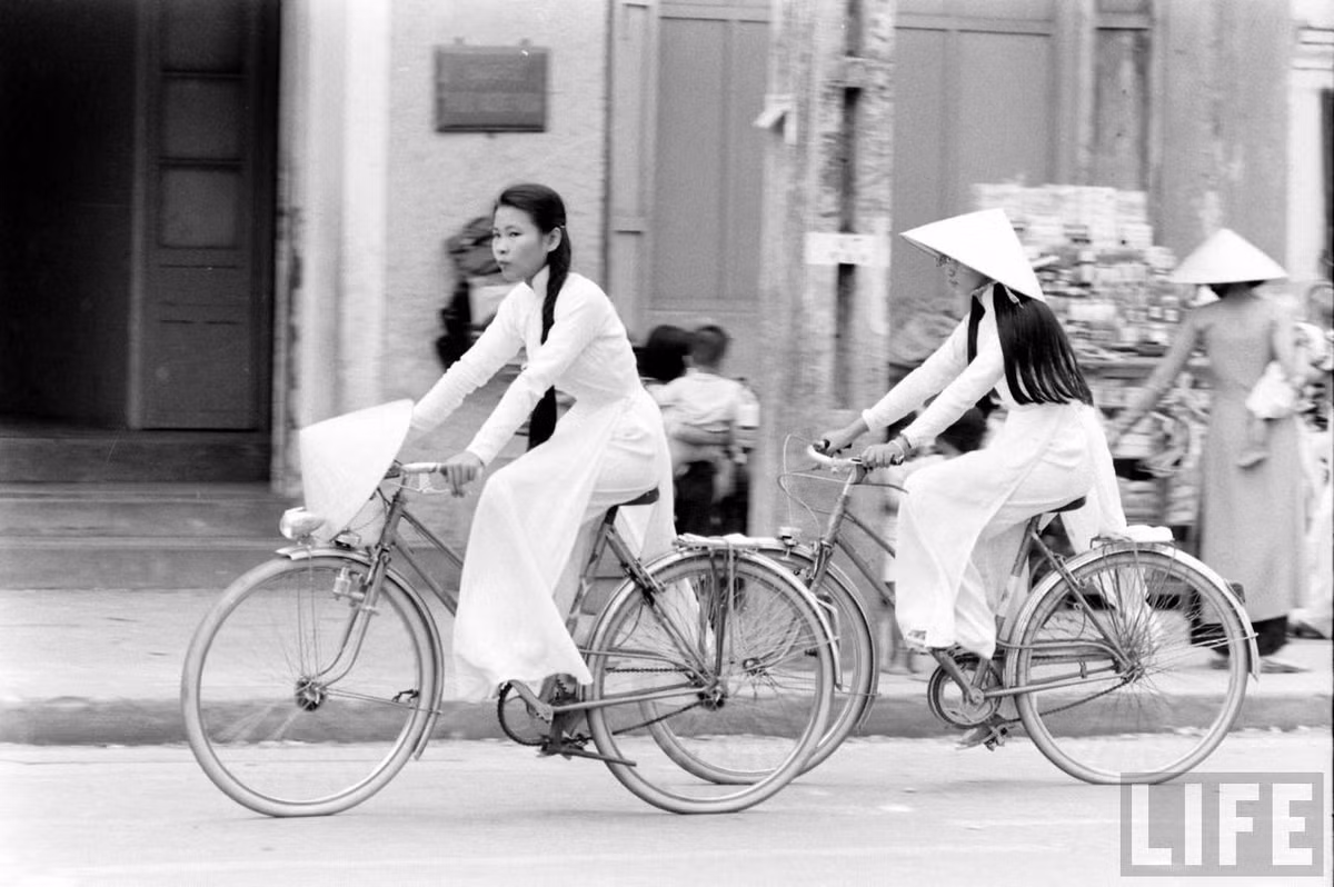 Một số hình ảnh khác về các thiếu nữ áo dài Huế trên xe đạp năm 1961. Ảnh: Life.