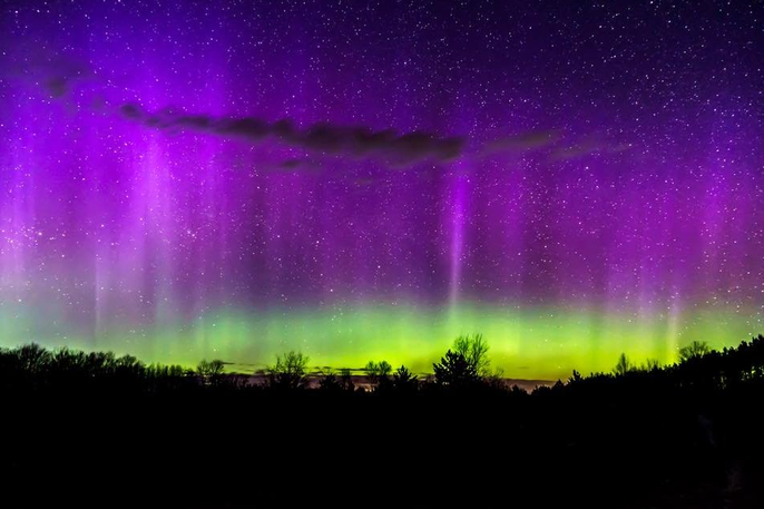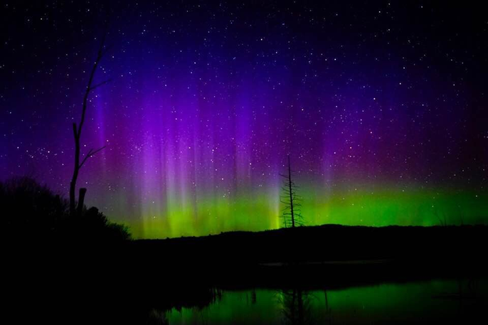 | Một góc độ khác của cực quang trên bầu trời đêm Michigan vừa qua - ảnh: Isasc JC Diener |
