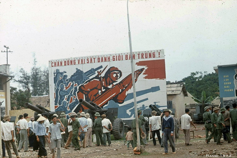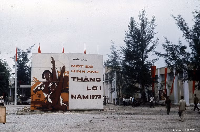 Quang cảnh tại lối vào triển lãm "Một số hình ảnh thắng lợi năm 1972", được tổ chức ở Hà Nội đầu năm 1973.