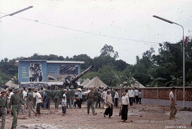 Xác máy bay Mỹ chất đống, các loại xe tăng, thiết giáp Mỹ nằm phơi mặt, người dân quây quanh pháo tự hành... là loạt ảnh đáng nhớ về một triển lãm diễn ra ở Hà Nội năm 1973.