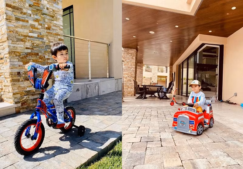 Trong khoảng thời gian dịch bệnh diễn biến phức tạp, con trai Đan Trường được nghỉ học và thỏa sức vui chơi trong biệt thự của gia đình ở Mỹ.
