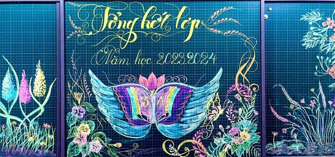 Những tấm bảng trang trí ngày chia tay được chính giáo viên chủ nhiệm vẽ nên cực đẹp mắt và kỳ công khiến nhiều người trầm trồ khen ngợi.