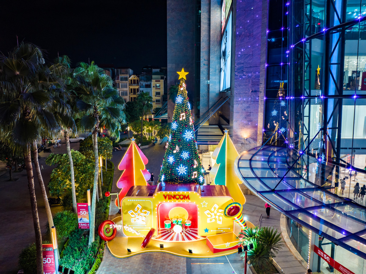 Được trang hoàng đầy màu sắc và ánh sáng, cây thông phía ngoài TTTM này thu hút sự chú ý của nhiều vị khách.