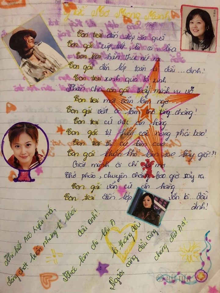Những món đồ quen thuộc như cuốn sổ tay chép lời bài hát, dán chi chít hình thần tượng trở thành kỷ niệm một thời tuổi thơ của thế hệ 8X, 9X đời đầu.