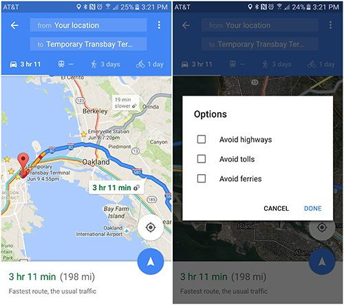 Khi sử dụng công cụ lập kế hoạch chuyến đi, Google Maps sẽ tìm các tuyến đường thông qua phương tiện ô tô, xe đạp hoặc đi bộ. Bạn có thể cho Maps tránh đường cao tốc, các đoạn đường thu phí, bến phà… để tiết kiệm tiền bạc.