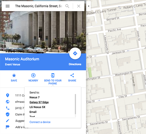 Chỉ cần sử dụng công cụ Send to your phone nằm trong thẻ địa điểm. Điện thoại hoặc máy tính sẽ xuất hiện dưới danh sách các thiết bị có sẵn, giả sử bạn đã đăng ký với tài khoản Google cá nhân.