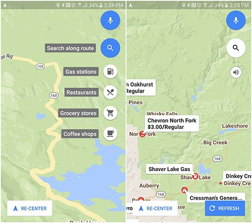 Google Maps sẽ hiển thị những lời đề nghị cụ thể để hành khách có thể thấy các vị trí khi đang lái xe. Bạn thậm chí có thể thấy thông tin các trạm bán xăng và giá cụ thể tại các điểm, giúp tiết kiệm tiền khi chọn một trạm đổ xăng.
