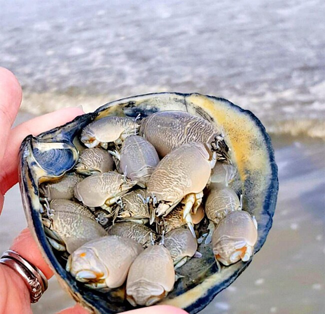 Theo tìm hiểu, con rù rì còn có tên gọi khác là ve sầu biển, thuộc họ giáp xác mười chân, mang tên khoa học Emerita. Tên tiếng Anh của loài này khá phong phú: mole crab, sand crab, sea cicada… Loài này có đặc điểm là hình dáng nhỏ bé, thân hình thuôn dài, kích cỡ chỉ bằng đầu ngón chân cái.