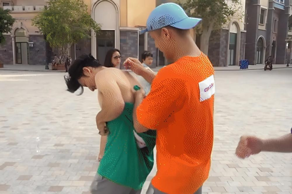 Với thử thách xé bảng tên ở lưng đối phương, người chơi "Chạy đi chờ chi" phải vật lộn với nhau.