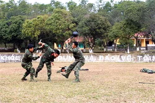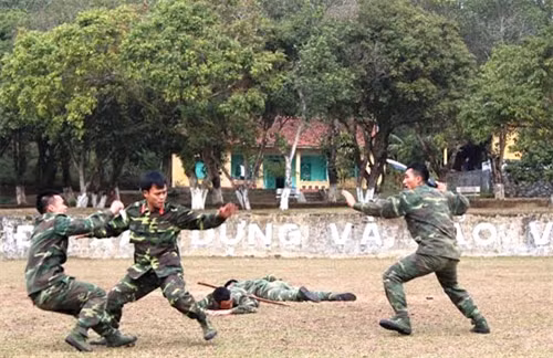 Để đáp ứng yêu cầu nhiệm vụ đòi hỏi người chiến sĩ không chỉ có tư tưởng vững vàng, an tâm công tác, mà còn đòi hỏi ở họ tinh thông về nghiệp vụ, giỏi về kỹ thuật, chiến thuật, có sức khỏe tốt. Những năm qua, đơn vị đã tập trung nâng cao chất lượng huấn luyện, rèn luyện thể lực cho bộ đội. Ảnh: Bài tập võ tay không thường xuyên được các chiến sĩ luyện tập thuần thục.