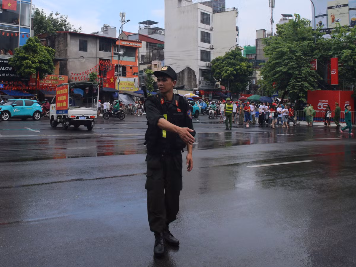 Chiều ngày 1/9, trên đường Kim Mã, các lực lượng chức năng đảm bảo an ninh cho lễ diễu binh, diễu hành A80 đã có mặt tại các điểm chốt.