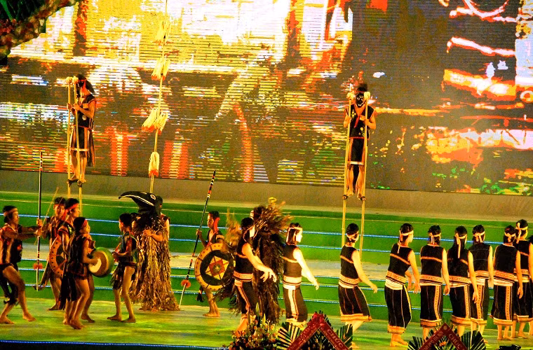 Lễ khai mạc bắt đầu bằng những màn biểu diễn đầy ấn tượng mang đậm sắc màu Tây Nguyên