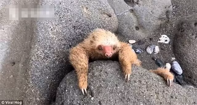 Tại bãi biển ở Costa Rica, sau khi thủy triều rút và cơn bão qua đi, người ta phát hiện một chú lười con tội nghiệp đang không ngừng run rẩy, ôm chặt lấy một hòn đá và không ngừng kêu cứu vô cùng thương tâm.