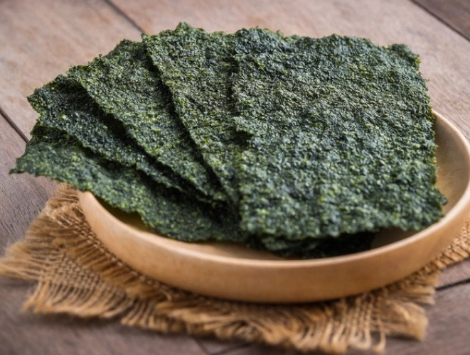 Rong biển Nori với vị mặn đặc trưng thường được dùng cho món sushi hay làm đồ ăn vặt. Ảnh minh họa