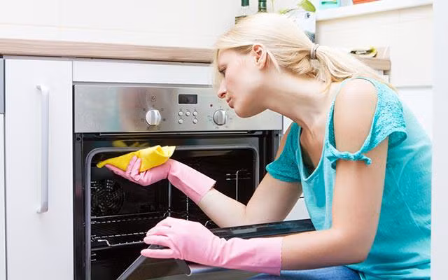 Bạn đừng nghĩ nước lau kính chỉ có tác dụng làm sạch mặt kính thôi nhé. Nó còn có khả năng vệ sinh lò nướng siêu sạch. Xịt một ít nước lau kính vào cửa và lòng lò rồi dùng vải mềm thấm nước kỳ cọ kĩ từ trong ra ngoài, nhớ kỳ kĩ cả phần kẽ, khe của lò.