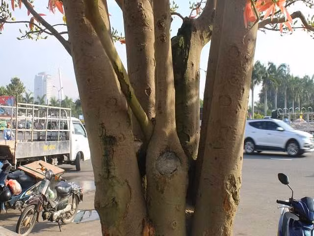 Theo tiết lộ của anh Phong, đây là loại mai hồng diệp (giống cúc) rất khó trồng được anh mua lại từ một người dân ở Gia Lai từ 14 năm trước. Thân cây mai cao 3,5m và tán rộng đến hơn 2,5m, với tổng cộng 5 nhánh lớn.