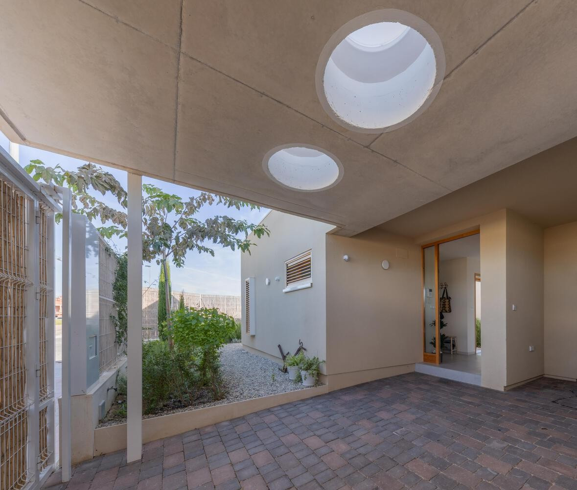 Phòng làm việc và hành lang dẫn đến sân hiên quay mặt về hướng Bắc giúp ngôi nhà mát mẻ hơn vào mùa hè trong khi các phòng ngủ mở ra sân vườn.