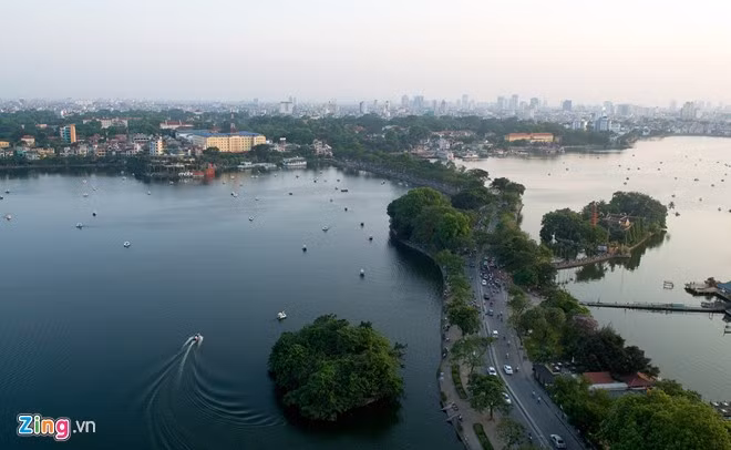 Con đường độc đáo nhất thủ đô nằm giữa hồ Tây và Trúc Bạch - hai hồ nổi tiếng của Hà Nội. Nhìn từ trên cao, đường Thanh Niên giống như một cây cầu phủ đầy cây xanh.