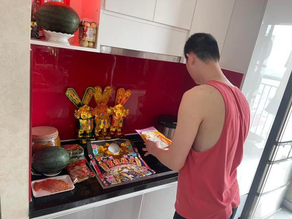 Gia đình siêu mẫu Hạ Vy cũng làm lễ cúng ông Công ông Táo từ 21/12 âm lịch. Cô chia sẻ: "Vợ chồng con cái con lễ mọn tâm thành kính dâng Thần Linh, Gia Tiên Tiền Tổ! Kính tiễn Ngài Đông Trù Tư Mệnh Táo Phủ Thần Quân. Thắp nén tâm hương tín chủ chúng con thành tâm kính bái".