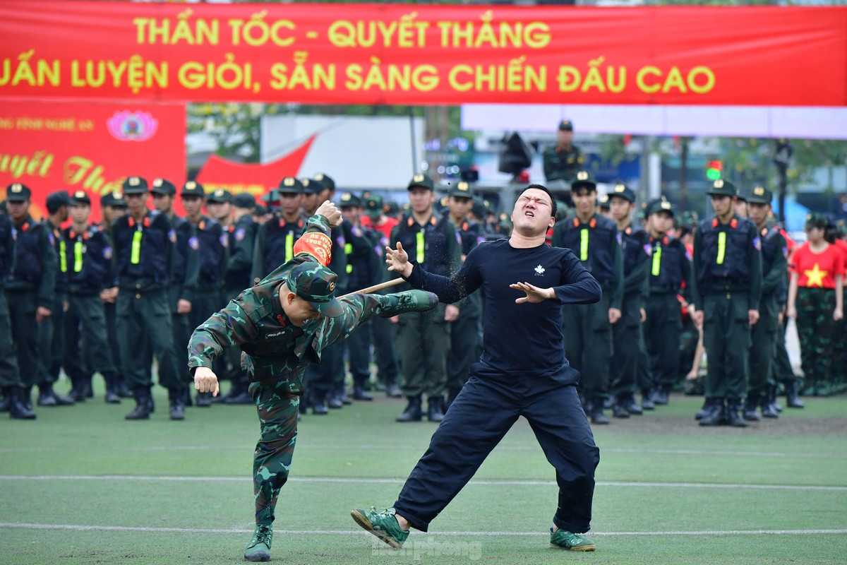 Cán bộ, chiến sĩ phô diễn sức mạnh, các bài võ thuật trấn áp tội phạm thông qua những tình huống giả định.