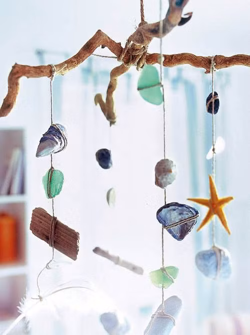 Những vật lưu niệm từ các chuyến đi biển như vỏ sò, vỏ ốc, mô hình tàu thủy, ván lướt sóng… cũng có thể trở thành những món đồ nhỏ xinh gợi lên ký ức về biển cho các thành viên trong gia đình. Hãy đặt chúng trên những chiếc kệ đính trên tường màu trắng, hay trên giá đỡ bằng gỗ được treo lên bằng dây thừng. Đó sẽ là ý tưởng rất tuyệt vời về cuộc sống nơi biển xanh.