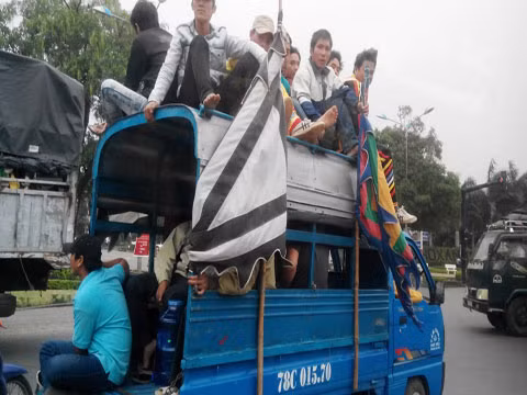 Một xe tang đi qua ngã tư trung tâm TP.Tuy Hòa, tỉnh Phú Yên trưa ngày 28/12/2013 khiến người đi đường "nhức mắt" bởi xe chở quá số người quy định.