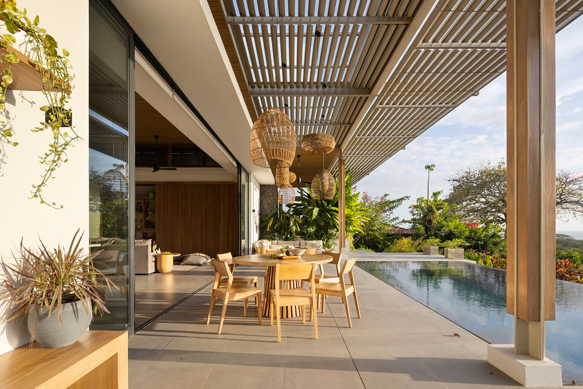Ngôi nhà này là hiện thân của cuộc sống bền vững, tạo ra năng lượng từ mặt trời, nhưng cũng che chắn ngôi nhà khỏi sức nóng mùa hè bằng giàn che và phần nhô ra rộng rãi.