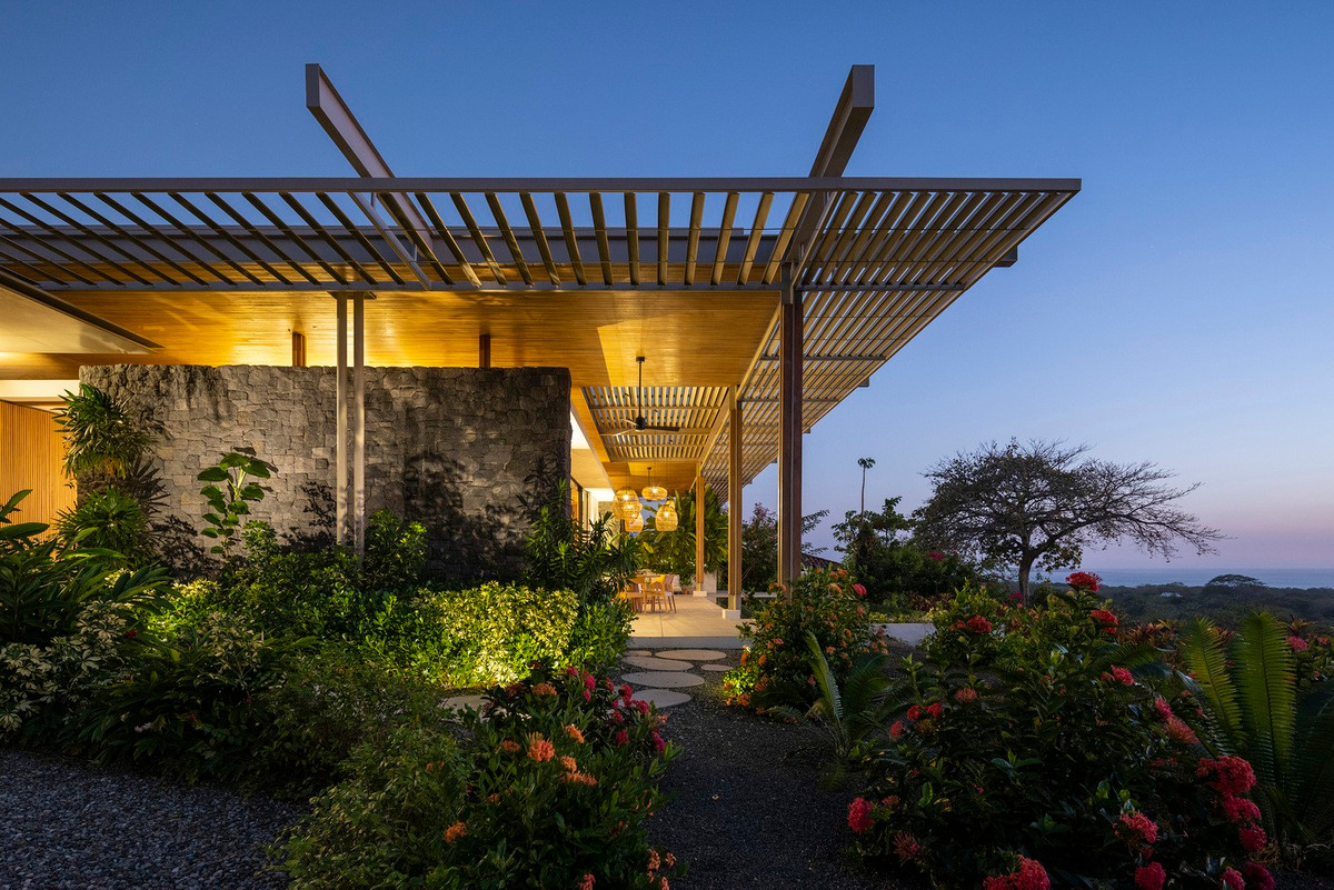 Từ ngoài vườn đến trong nhà, cây cối và thảm thực vật luôn xuyên suốt, tạo ra những khoảng trống có chủ ý trên mái nhà để phù hợp và tôn vinh các yếu tố tự nhiên.