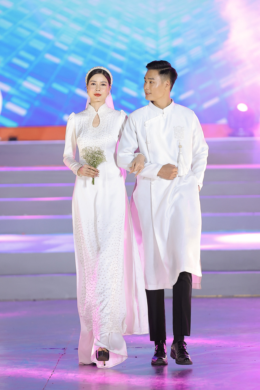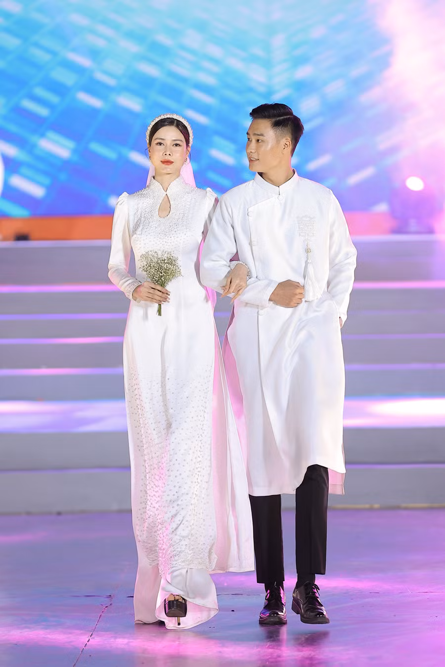 Cặp đôi Đình Tú – Phan Minh Huyền trong vai trò first face. Diện trang phục áo dài cưới, cặp đôi dành cho nhau cái nhìn trìu mến, khả năng diễn xuất tái hiện hình ảnh “cậu - mợ” trong Thương ngày nắng về chiếm trọn tình cảm của khán giả.