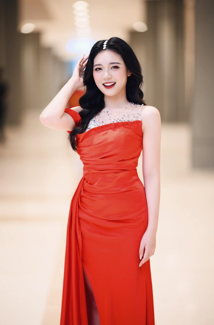 Khi đi dẫn, cô sẽ chọn những chiếc đầm dạ hội có phần cầu kỳ.