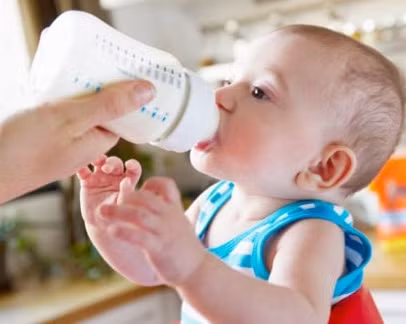 | Con bú đã no, mẹ đang vắt sữa để dự trữ cho con những lúc mẹ đi làm. |