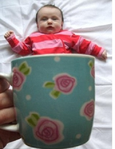Xu hướng chụp ảnh này được gọi là “Baby mugging”, nghĩa là giả vờ bé đang ngồi trong một chiếc tách khổng lồ, và sau đó chụp ảnh bé.