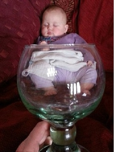 Để có thể tạo ra những bức hình này, các bà mẹ sẽ cầm một chiếc cốc lên trên đứa trẻ khi đặt chúng nằm trên giường, phải cầm làm sao chỉ nhìn thấy khuôn mặt của bé nhấp nhô trên vành của chiếc cốc.