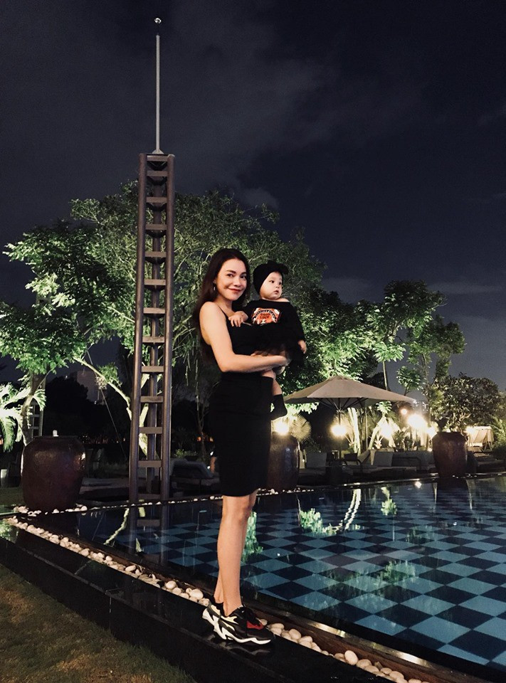 | Tháng 12/2018, Trà Ngọc Hằng công khai thông tin làm mẹ đơn thân khiến dư luận bất ngờ bởi người đẹp giấu chuyện mang bầu và sinh con. |