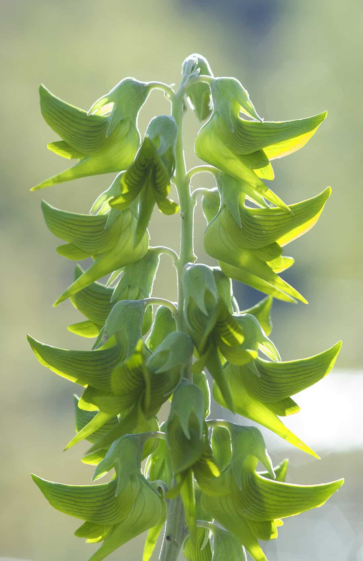 Trong bức ảnh, có thể thấy loài hoa này có hình dạng hệt như một con chim ruồi nhỏ xíu màu xanh lá cây.