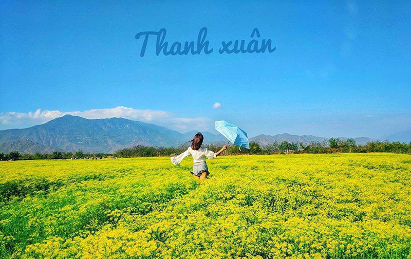 Cứ độ tháng 3 về, cánh đồng thì là Ninh Thuận lại đến độ ra hoa biến quang cảm nơi đây trải bạt ngàn màu vàng xen lẫn màu xanh cực lung linh.