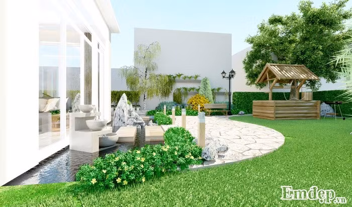 Gian thờ của ngôi biệt thự cũng được thiết kế trầm mặc hơn toát lên sự trang nghiêm và tôn kính với màu đen, trắng là chủ đạo.