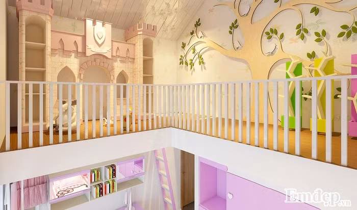Phòng ngủ của bố mẹ được thiết kế màu trắng và be vàng. Khung cửa sổ rộng, gia chủ có thể đón nắng gió và ngắm thiên nhiên từ chính chiếc giường ngủ của mình.