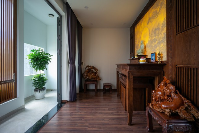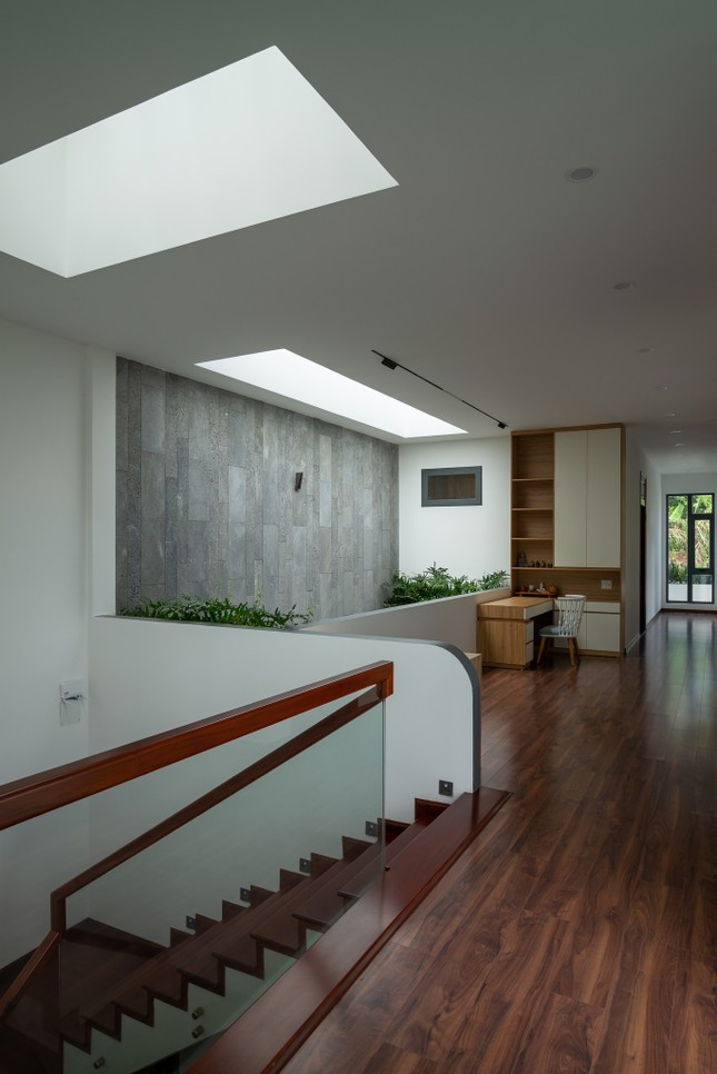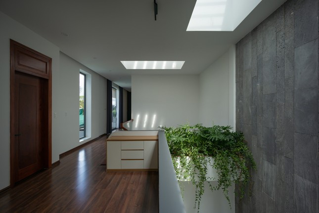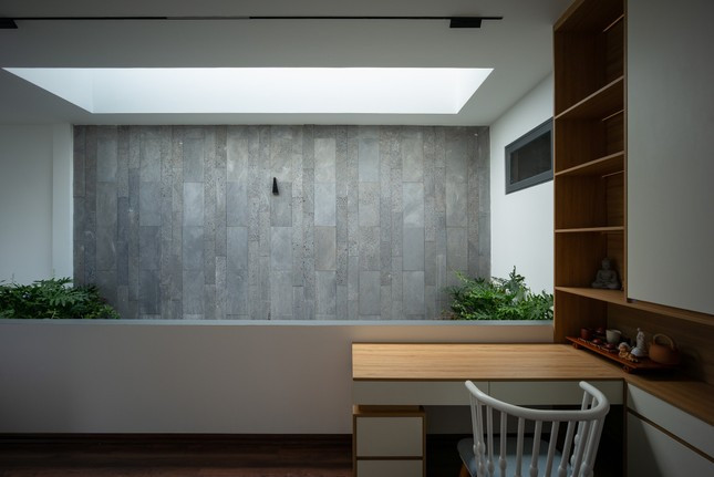 Giếng trời và cây xanh cũng được bố trí ở các góc trong nhà để phòng nào cũng lấy sáng được và giúp điều hòa không khí.