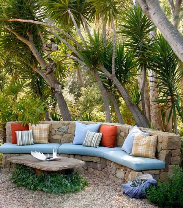 Ngoài ra, bạn có thể xếp đá thành những bộ bàn ghế để nghỉ ngơi trong vườn.