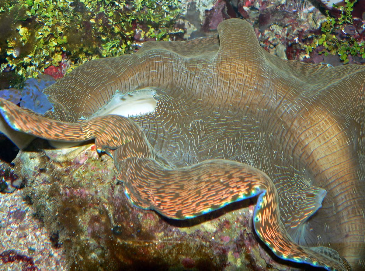Loài sinh vật trông rất đẹp ở vùng biển Đông của Việt Nam này chính là loài nghêu khổng lồ phương Nam (tên khoa học: Tridacna derasa), còn được gọi là trai tượng.
