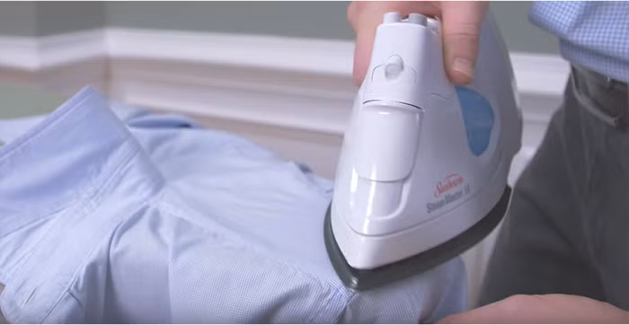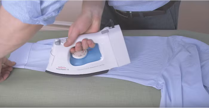 Trước tên, là mặt trong của cổ tay áo để loại bỏ các nếp nhăn chính- sau đó tiếp tụclà từ phần rìa vào giữa. Cuối cùng, lật cổ tay áo lại và là phần phía ngoài với phương pháp tương tự. Là nhẹ nhàng qua cúc áo để không bị hỏng.