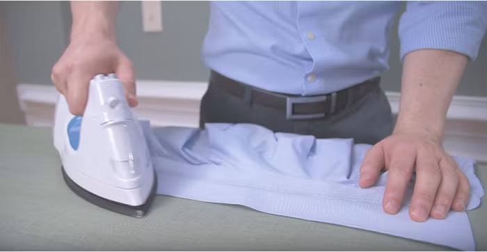 Hãy chú ý đến loại vải của áo sơ mi, trong mỗi cổ áo đều có một dán nhãn có tất cả thông tin của áo bao gồm cả biểu tượng là ủi. Nó cho người dùng biết được chiếc áo có được là hay không.