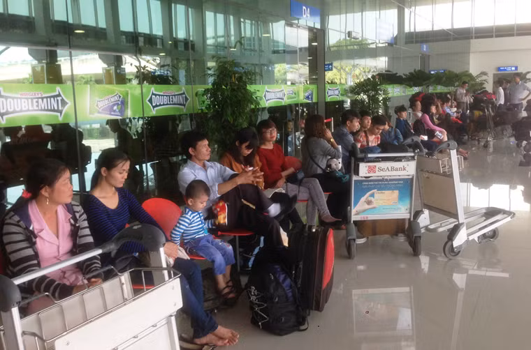 Mệt mỏi chờ ra máy bay về quê ăn Tết