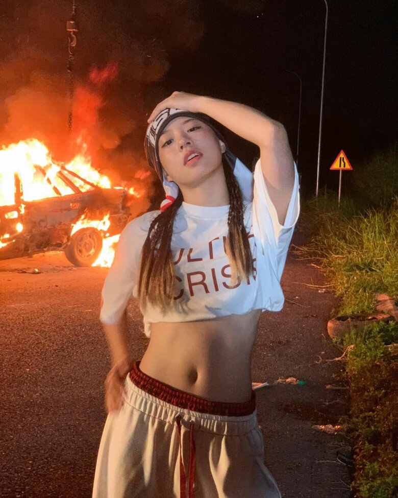 Bên cạnh đó, cô nàng cũng thường xuyên xuất những bản phối cực chất như áo bomber oversize, áo croptop ôm body, tank top thể thao, kết hợp cùng quần cargo túi hộp, jeans ống rộng rách gối, quần jogger thun, đi kèm là sneaker cổ cao hoặc giày thể thao chunky. Phụ kiện của cô cũng không cầu kỳ nhưng luôn có điểm nhấn: từ mũ beanie, kính râm bản nhỏ, đến vòng cổ dây xích hay túi đeo chéo mini.