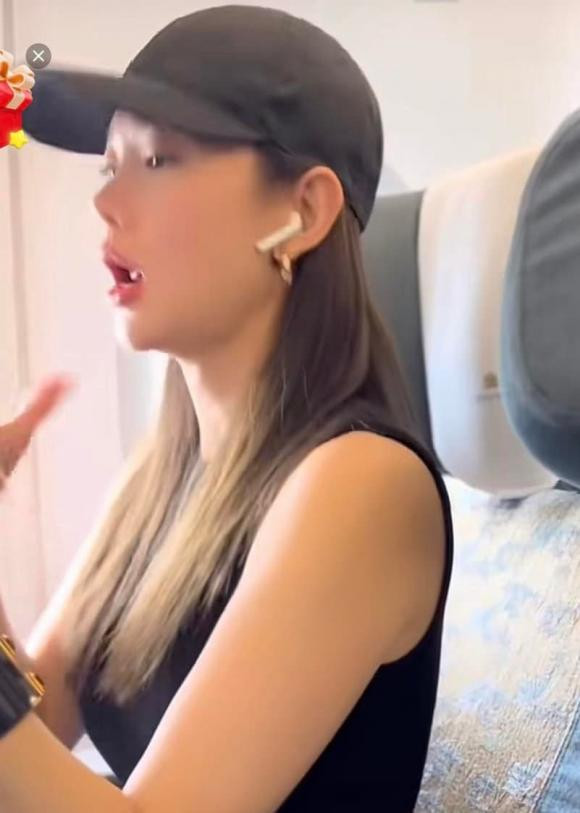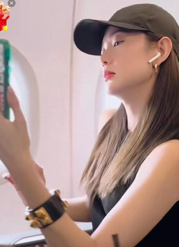 Minh Hằng múa tay liên tục và nhún nhảy không ngừng theo nhạc khi đi máy bay.