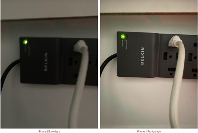 Khác biệt lớn nhất giữa camera của hai máy chính là chế độ chụp đêm Night mode mà chỉ iPhone 11 Pro có. Ảnh chụp từ 11 Pro sẽ trông đẹp hơn trong điều kiện ánh sáng yếu so với ảnh chụp trên SE vì chế độ chụp đêm giúp thu sáng nhiều hơn nên mang lại bức ảnh rõ hơn, sáng hơn.